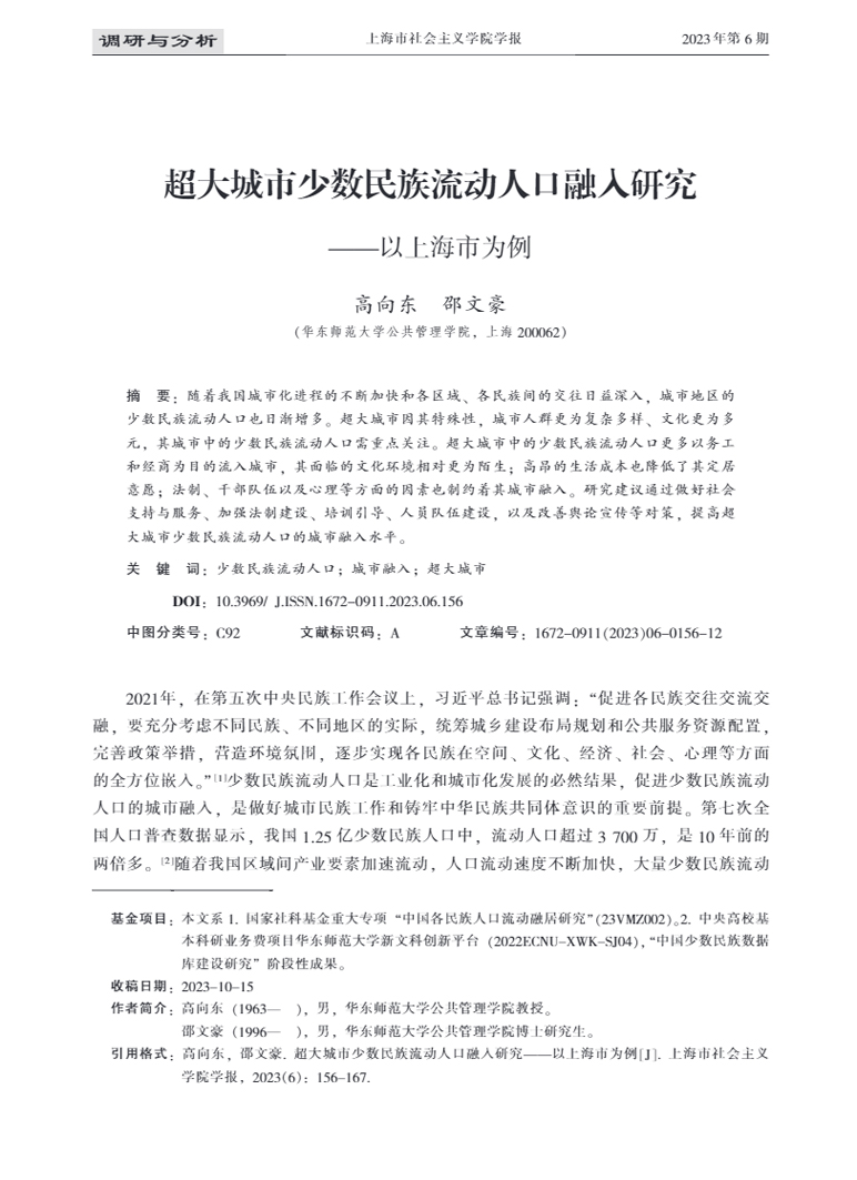 《超大城市少数民族流动人口融入研究——以上海市为例》