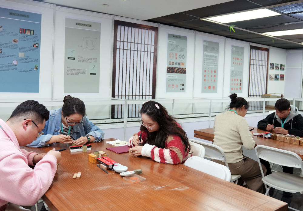展览期间,每日开设篆刻主题工作坊,由beat365英国官网网站书法篆刻专业师生团队现场指导,让观众亲自动手,体验篆刻,实现“走得进、坐得下、动得起、带得走”的沉浸式体验,践行了“有展必导、场馆育人”的办展理念。