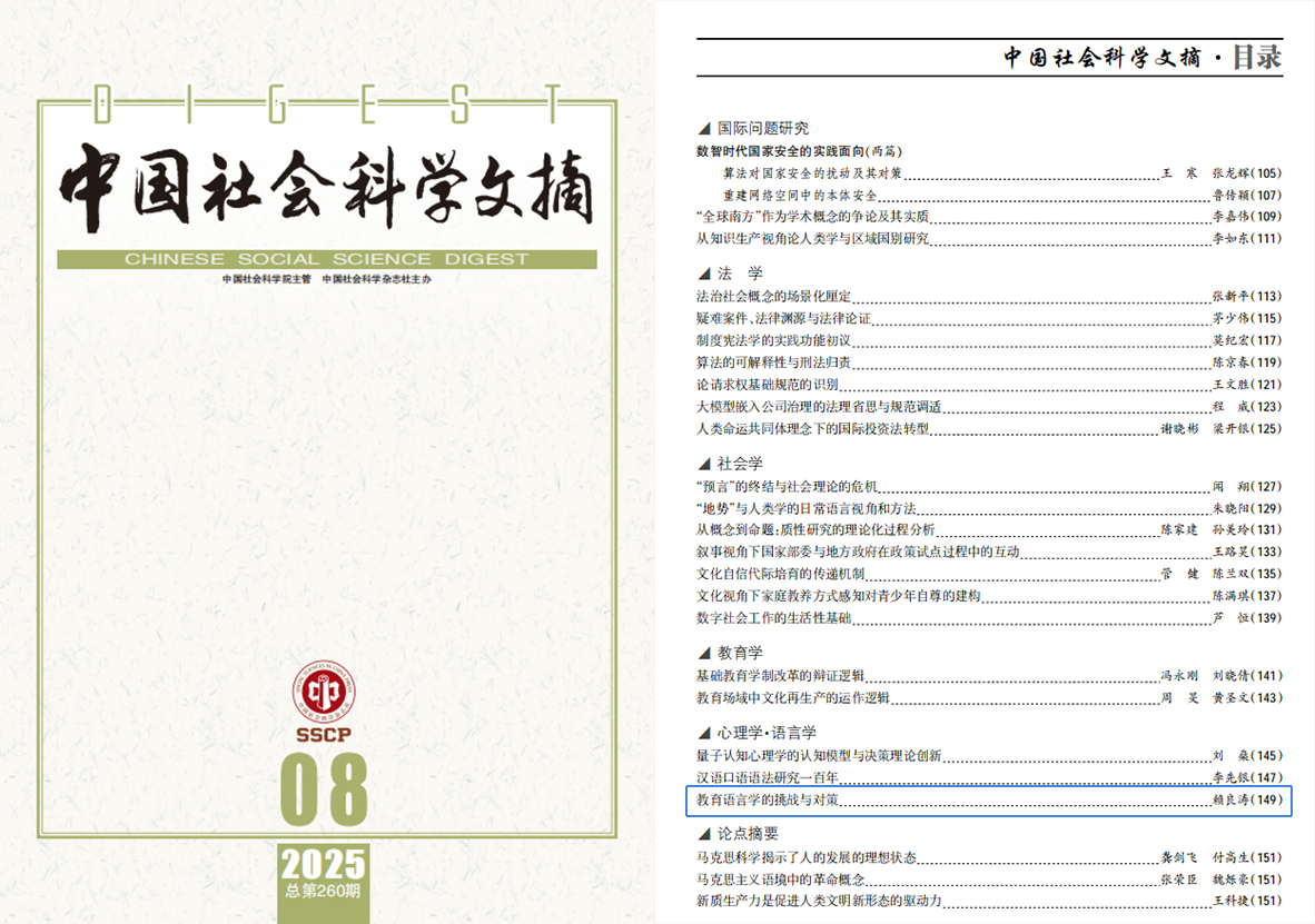 10|赖良涛教授文章被《中国社会科学文摘》全文转载,探讨教育语言学的挑战与对策