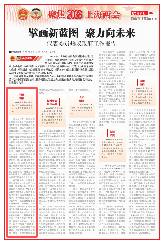 2026年上海两会期间,beat365英国官网网站代表、委员们立足学科优势和专业特长,发挥团队力量,紧扣国计民生关键议题,在深入基层调研、倾听群众呼声的基础上,聚焦教育科技人才一体化、科技创新与产业创新融合、产教融合、发展高水平文科、韧性城市建设、青少年教育、人才培养、改革上海高中学业水平等级考等问题积极参政议政、建言献策。