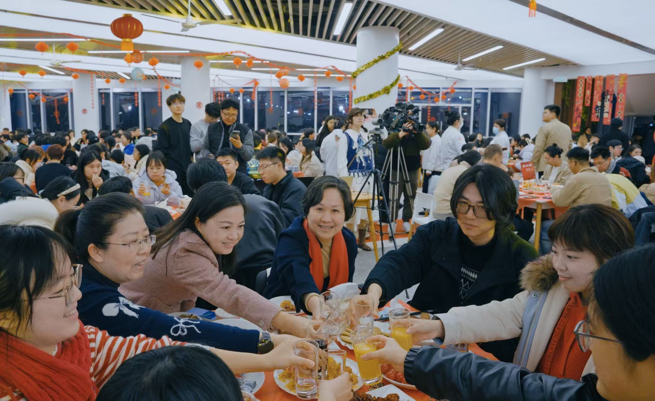 同乐会席间,市教委领导及校领导来到同学们身边,向师生们举杯致意、亲切交流,送上诚挚的新春问候。
