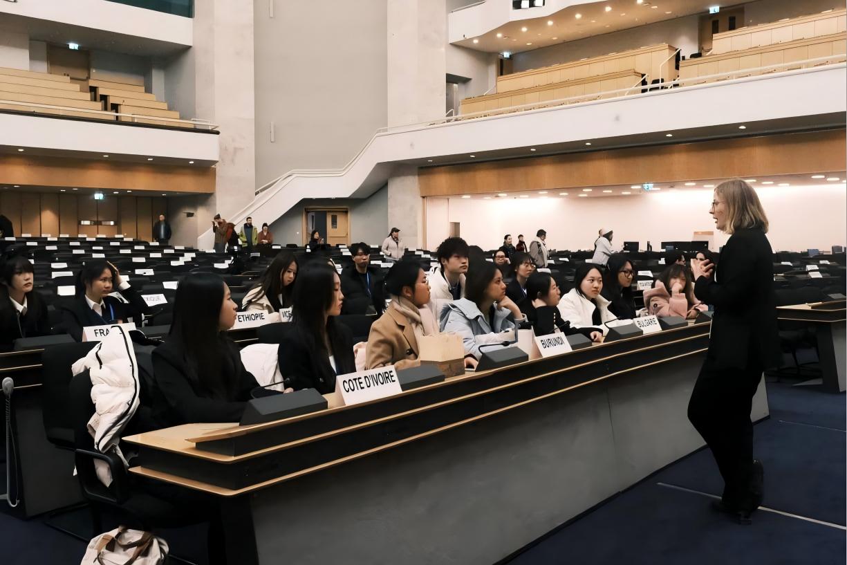 在瑞士日内瓦,同学们走进联合国欧洲总部万国宫,与国际劳工组织、红十字国际委员会、世界贸易组织、国际电信联盟等机构对话。通过联合国官员授课、模拟外交磋商、创作倡议书等方式,同学们围绕可持续发展目标展开研讨,在沉浸式实践中理解多边外交的复杂与精妙,将全球治理学习从理论带入现实。