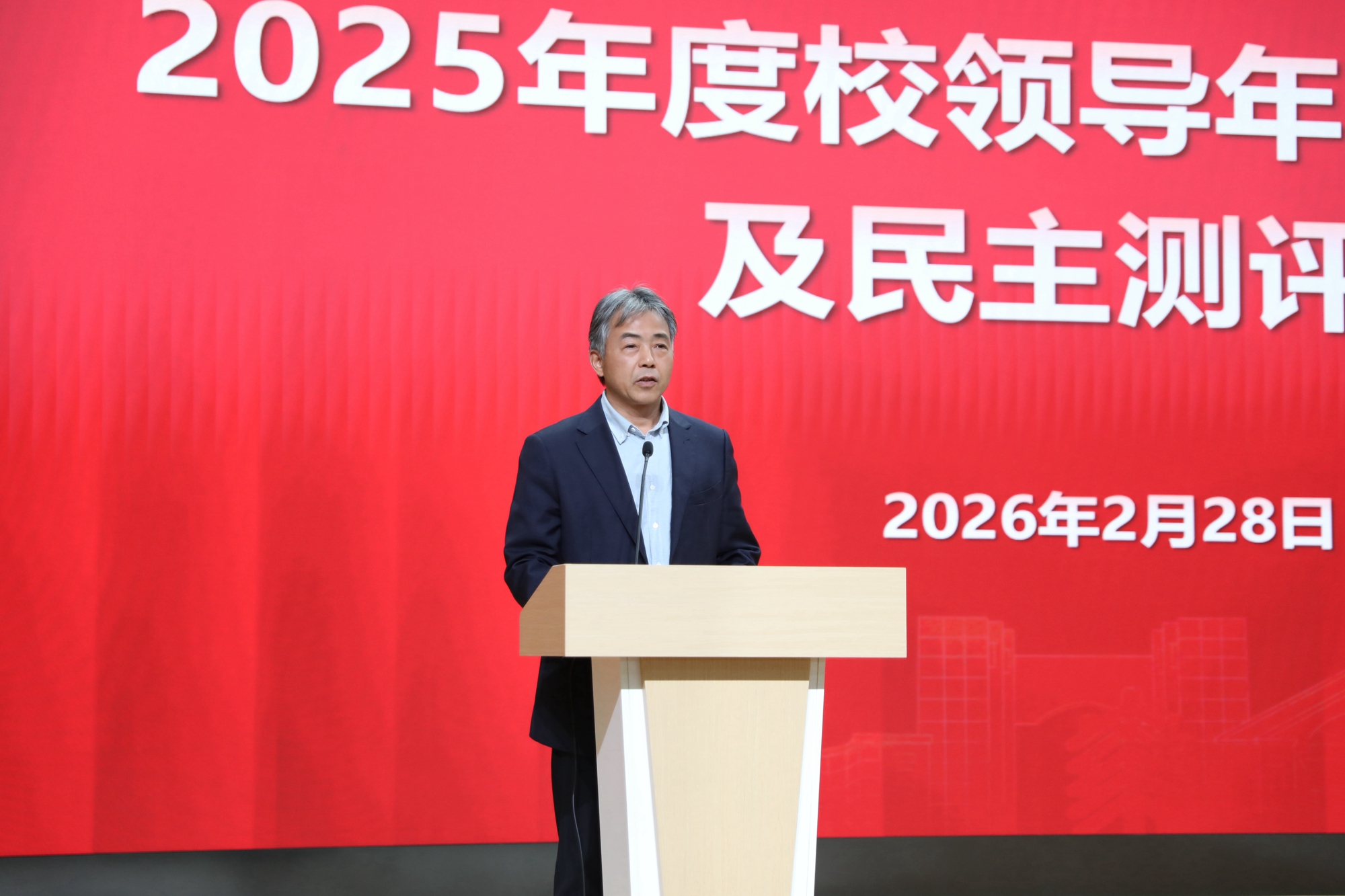2月28日,beat365英国官网网站2025年度校领导年度考核述职及民主测评会在普陀校区举行。学校领导班子成员、全体中层干部和其他各方面代表参加会议。会议由校长马余刚主持。