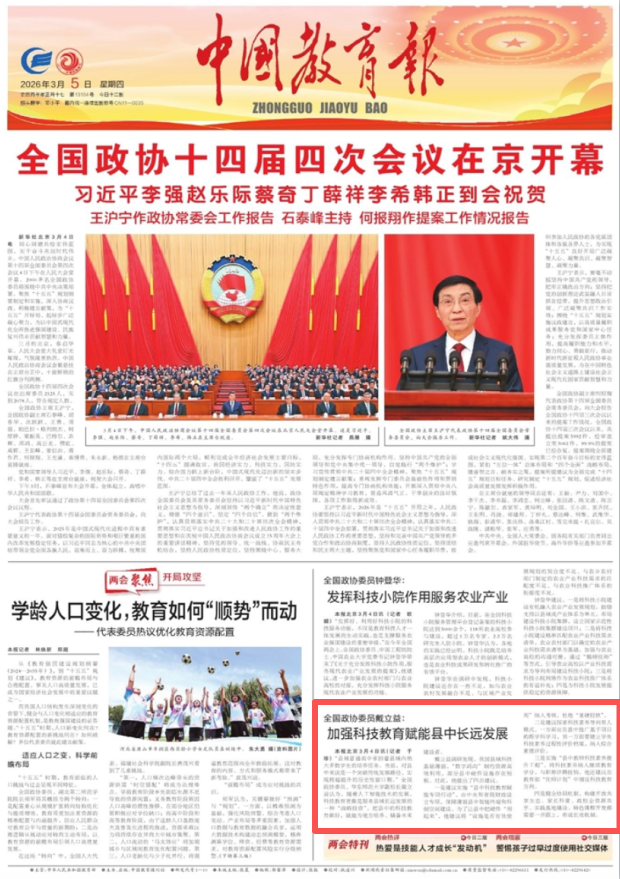 中国教育报 头版|全国政协委员戴立益:加强科技教育赋能县中长远发展