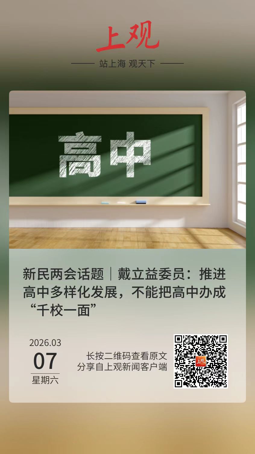 上观新闻|【新民晚报】新民两会话题 戴立益委员:推进高中多样化发展,不能把高中办成“千校一面”