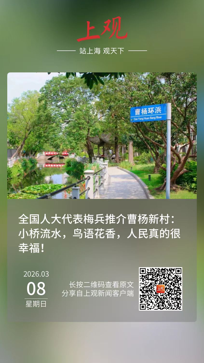 上观新闻|【文汇报】全国人大代表梅兵推介曹杨新村:小桥流水,鸟语花香,人民真的很幸福!