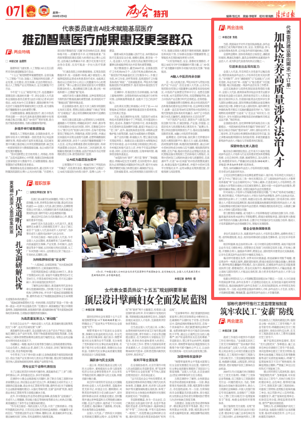 法治日报|代表委员建议面向需求“下订单” 加快培养高质量涉外法治人才