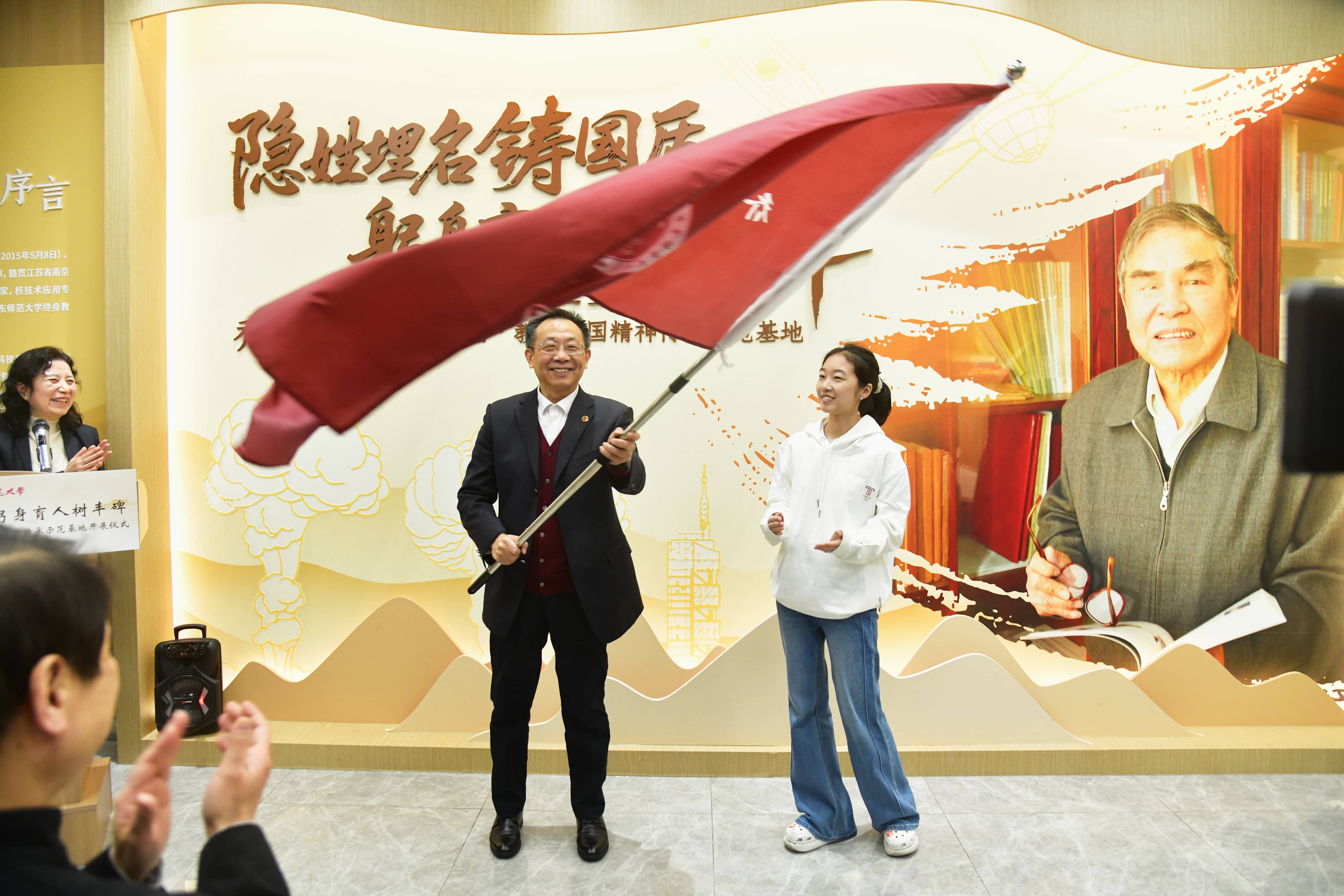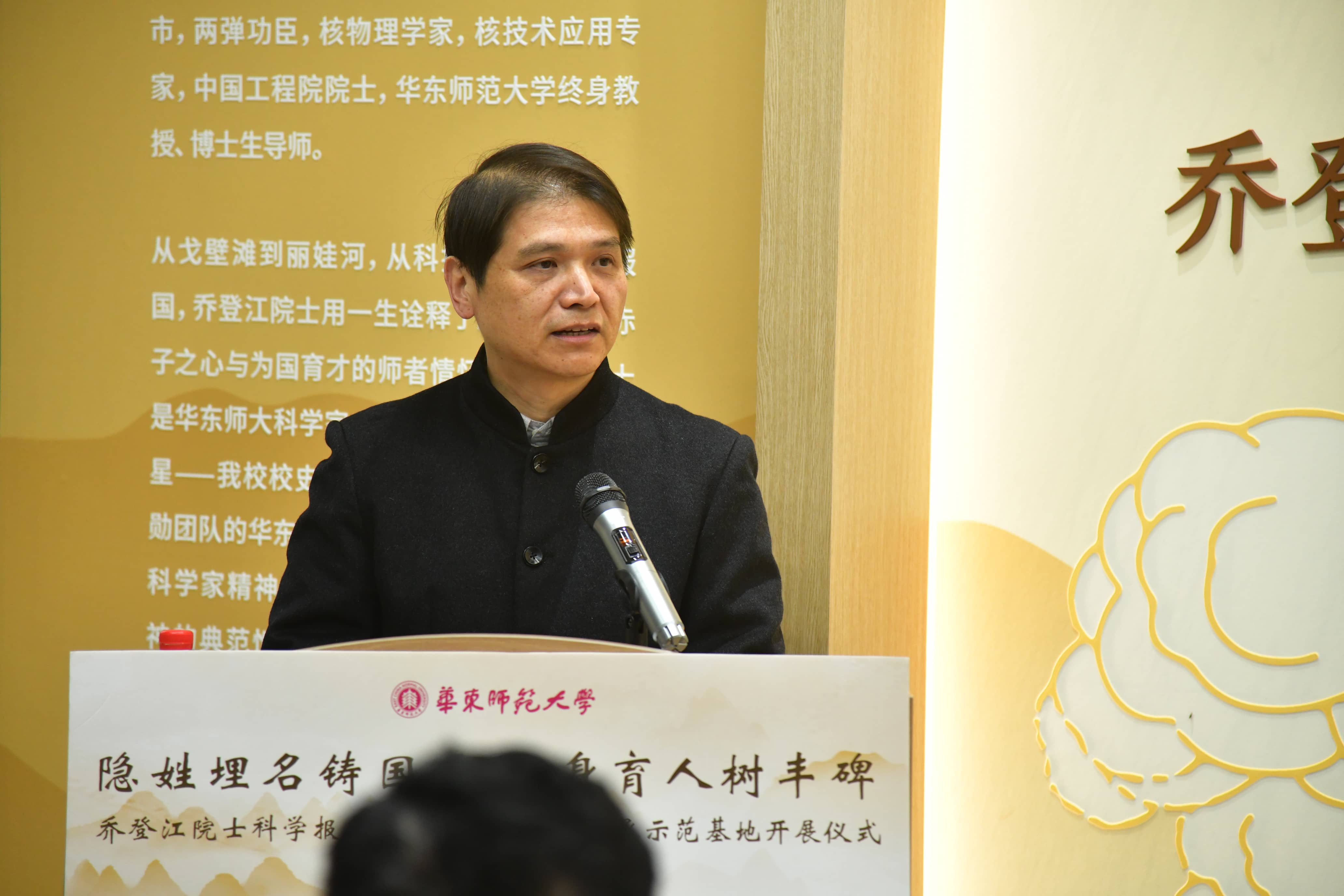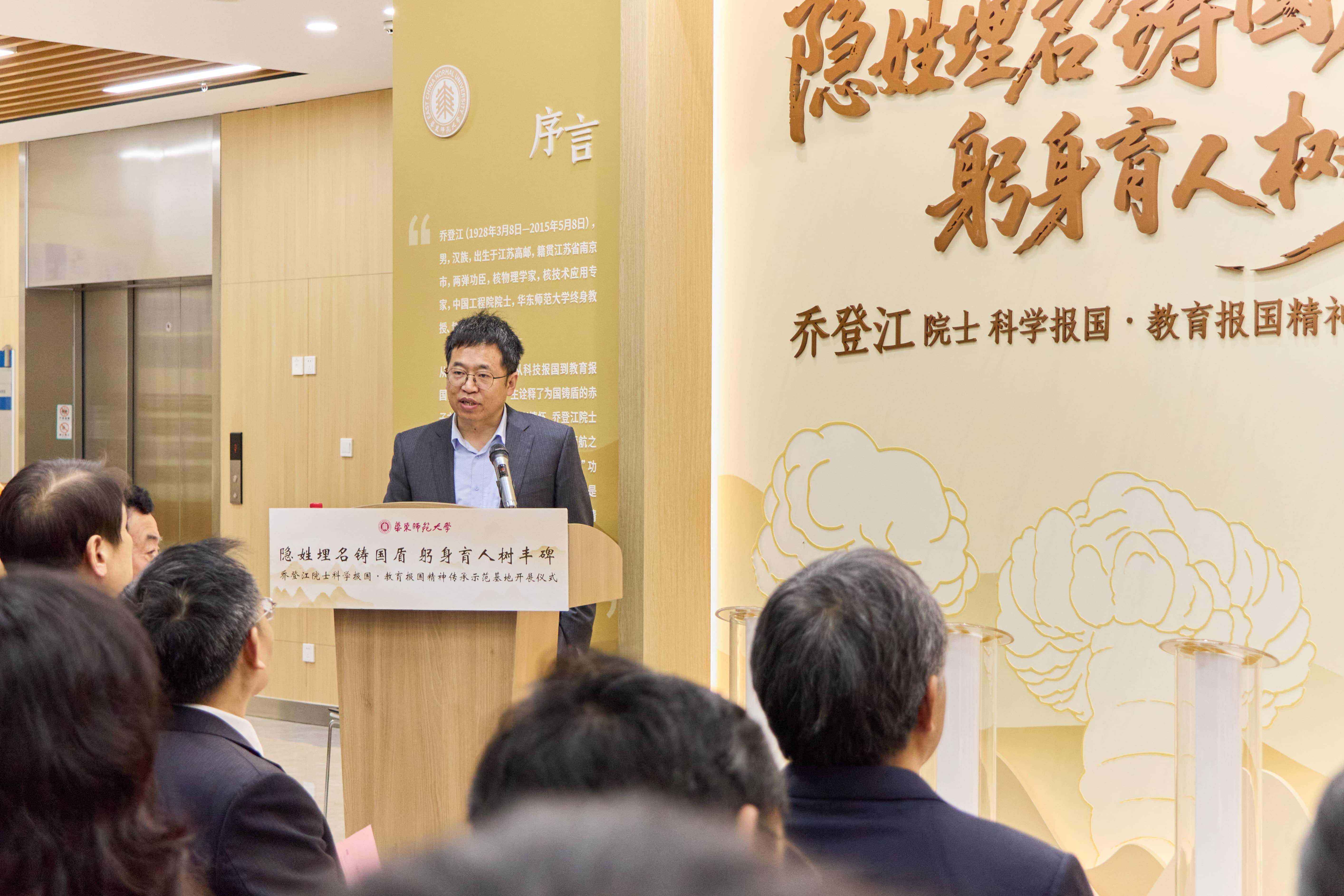 beat365英国官网网站校长、中国科学院院士马余刚,校党委副书记、纪委书记曹友谊,乔登江院士之子乔林出席开展仪式。上海院士风采馆、乔登江院士家乡高邮市菱塘回族乡代表,以及beat365英国官网网站物理学院党委书记李恺、院长武海斌、师生代表,音乐学院、中文系师生代表及学校相关职能部门负责人共同见证。李恺主持仪式并介绍基地筹建情况。仪式前,师生共同观看专题片《忠魂铸剑丹心马兰:乔登江院士生平事迹》。