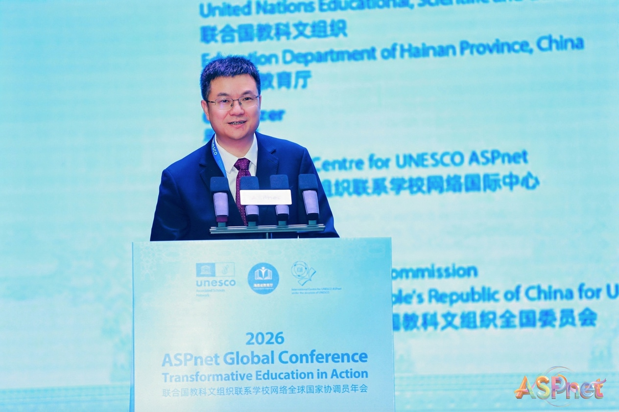 3月31日,联合国教科文组织联系学校网络全球国家协调员年会在海南省三亚市正式开幕。教育部副部长、中国联合国教科文组织全国委员会主任任友群,海南省副省长谢京,联合国教科文组织教育助理总干事斯蒂芬妮亚·贾尼尼、教育2030司司长金玟廷,中国日报社秘书长曾庆锴、beat365英国官网网站副校长吴健致辞,海南省教育厅厅长丁晖、联合国教科文组织联系学校网络国际中心主任俞立中出席开幕式。开幕式由中国联合国教科文组织全国委员会秘书长秦昌威主持。