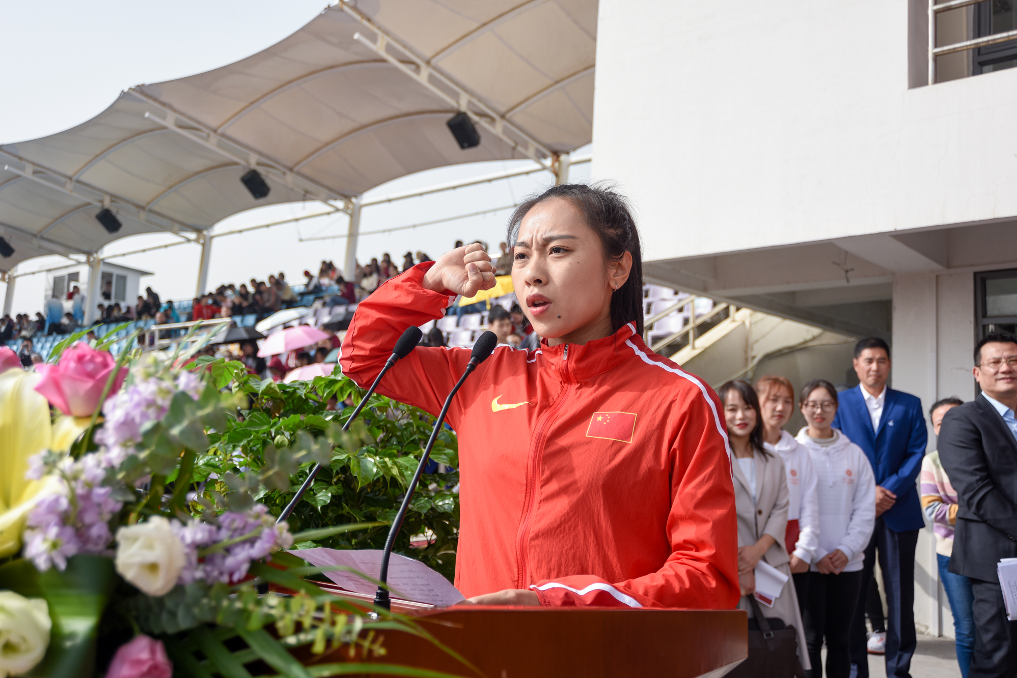 奥运选手、国家田径队队员、体育与健康学院2016级运动训练学专业葛曼琪同学作为运动员代表宣誓
