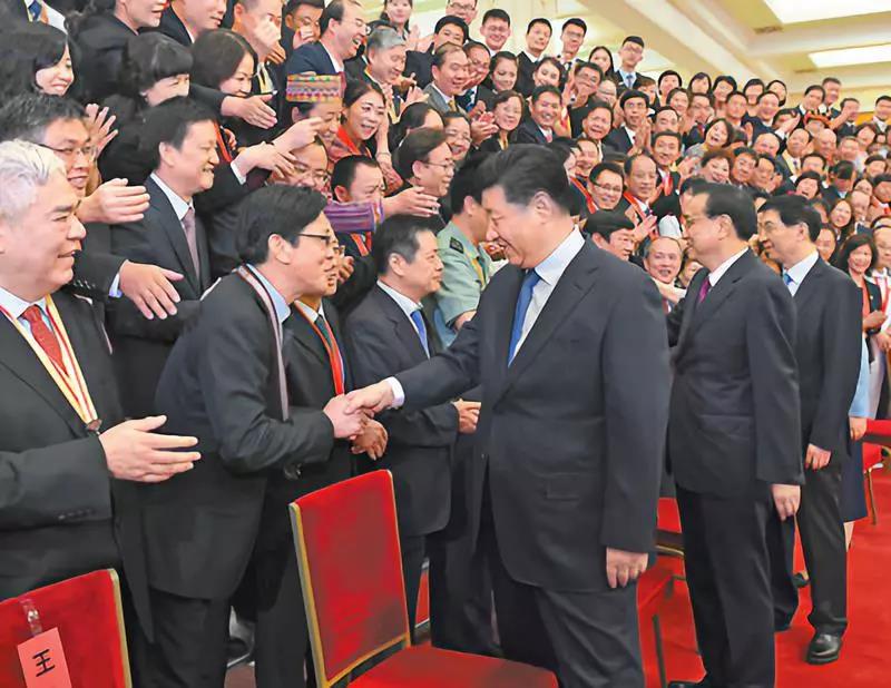 教师节当天,党和国家领导人习近平、李克强、王沪宁等在北京人民大会堂会见庆祝2019年教师节暨全国教育系统先进集体和先进个人表彰大会受表彰代表。(新华社记者 申宏摄)