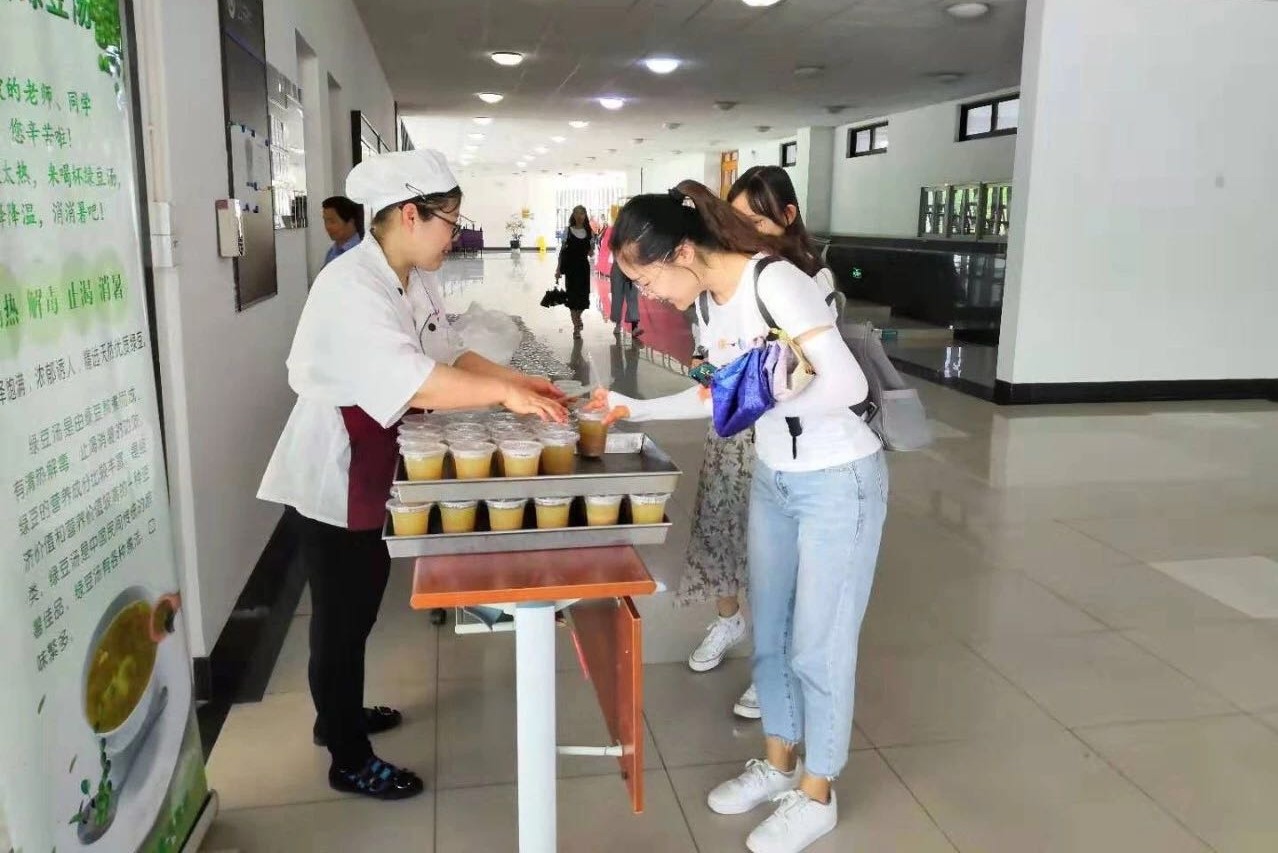 餐饮部门特别熬制绿豆汤为师生们消暑降温