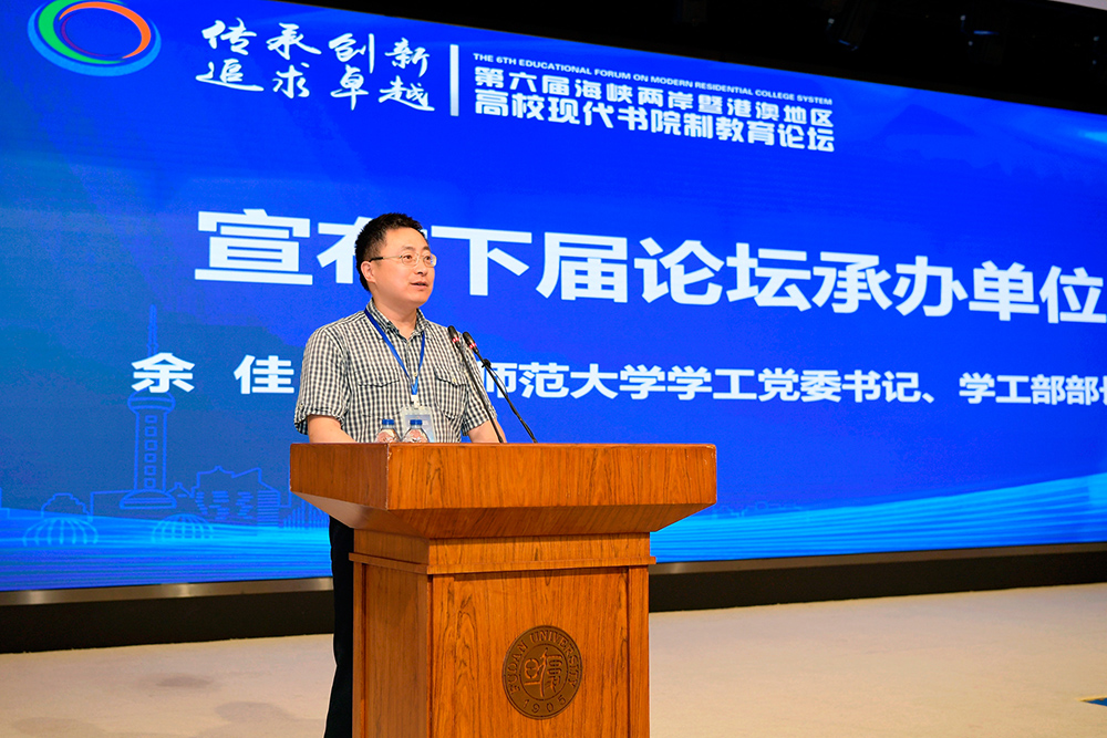 学工党委书记、学生工作部部长余佳代表理事长单位宣布下届高校书院联盟论坛承办方