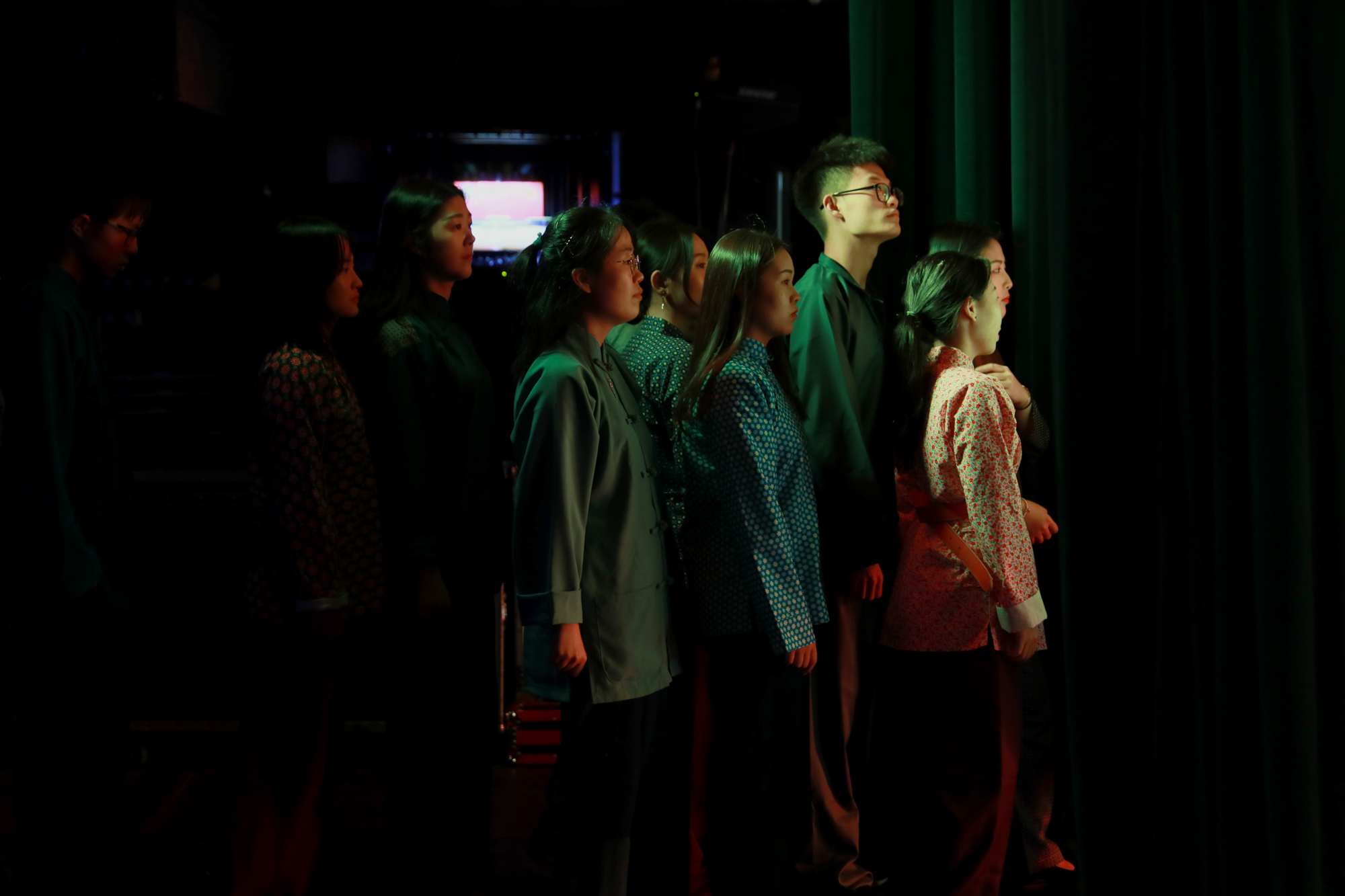 11日晚,校长钱旭红观看彩排并与参演师生合影
