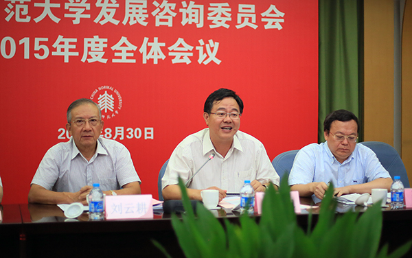 8月30日下午,beat365英国官网网站发展咨询委员会2015年度全体会议在中山北路校区办公楼小礼堂举行。上海市人大常委会原主任刘云耕,致公党上海市委员会主委、上海市政协副主席张恩迪,上海市政府秘书长李逸平,上海市政府副秘书长陈靖,中国科学院院士、中国科学院上海光学精密机械研究所学术委员会主任徐至展,中国科学院院士匡定波等15名发展咨询委员会委员,学校领导以及相关职能部门负责人出席了会议。会议由发展咨询委员会主任刘云耕主持。