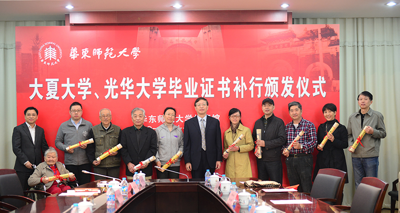 11月12日,大夏大学、光华大学毕业证书补行颁发仪式在中山北路校区举行。1949届蒋道福,1950届的陈金华、胡和生等11位校友及家属代表参加仪式,并现场领取了迟到60年甚至70年的毕业证书。副校长范军出席仪式,仪式由档案馆馆长汤涛主持。