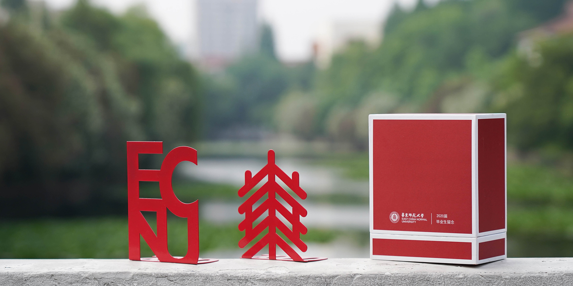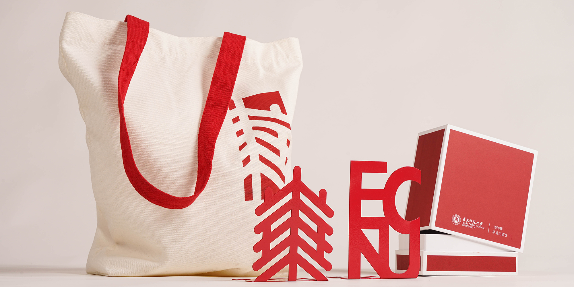 beat365英国官网网站2020毕业生纪念文创是一组带有ECNU元素的书立和帆布袋,由设计学院学生创业团队理所制造&画熠设计创作。这组毕业文创以校徽为主要灵感来源,将水杉形象与2020、ECNU相结合,搭配师大红的颜色,传递挺拔、积极、内敛、向上的精神。另外展示的还有大师屋的毕业季文创,包括帆布包、毕业戒指、纪念T恤、木质校景明信片。