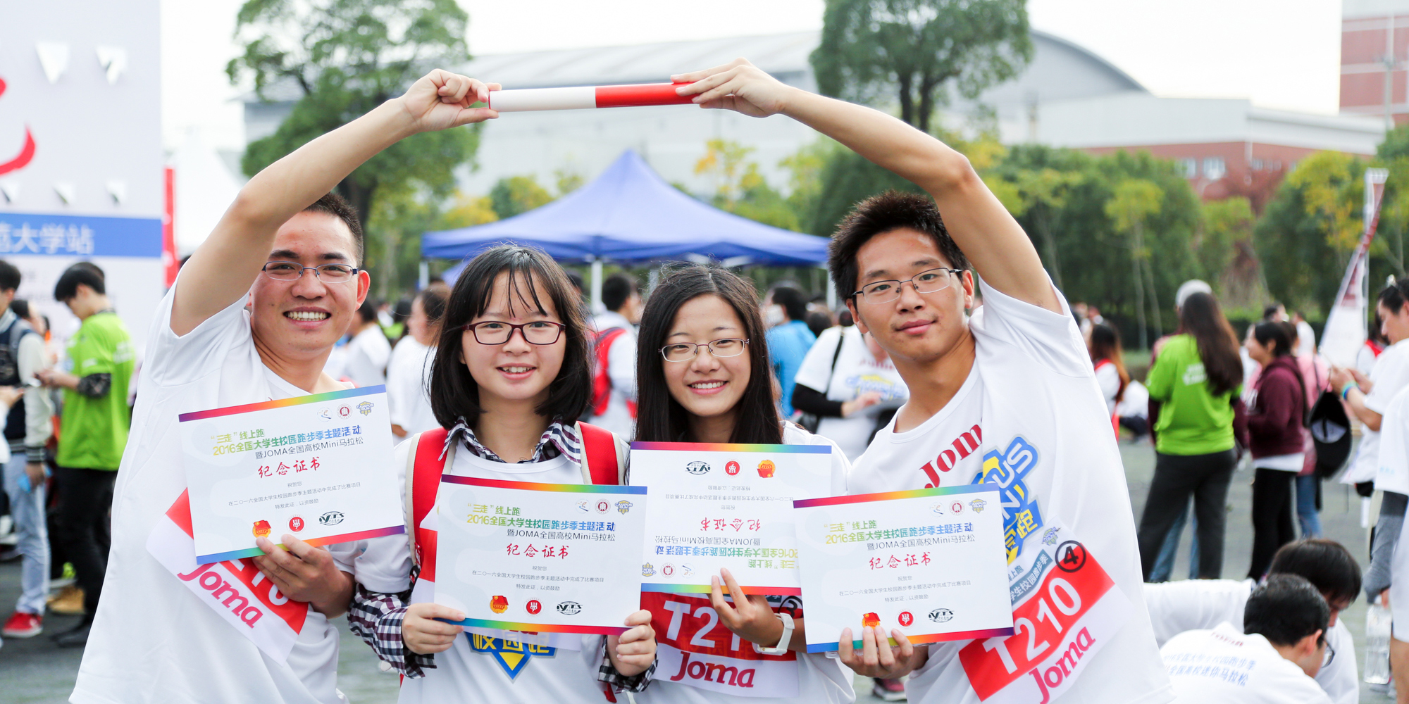 上周末两场马拉松跑进beat365英国官网网站。共青团中央学校部、全国学联秘书处、中国青旅集团公司特举办2016全国大学生校园跑步季暨JOMA全国高校Mini马拉松,11月12日“三走”线上跑活动行进至beat365英国官网网站站。这是今年初冬beat365英国官网网站的一次超大规模校园约跑,主会场在西操场,赛道沿图书馆前、光华路和大夏路,全程7千米。比赛分为团体接力赛(4人一组,每组不少于2名女生,不多于1名教师)和专业个人赛(仅限学生个人报名,相关专业或长跑爱好者,需经过体检)。