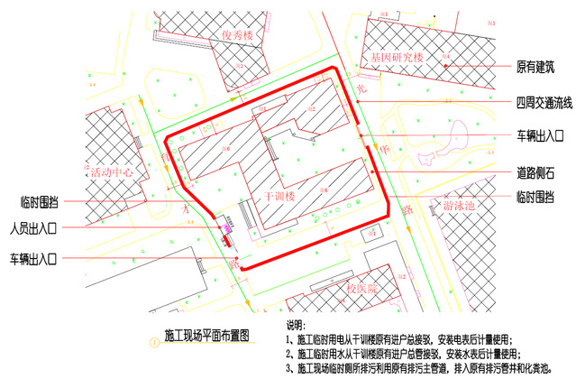 因中北校区干训楼修缮工程、水工模型实验室修缮工程两个项目施工需要,将对施工区域进行临时全封闭(详见下图)。