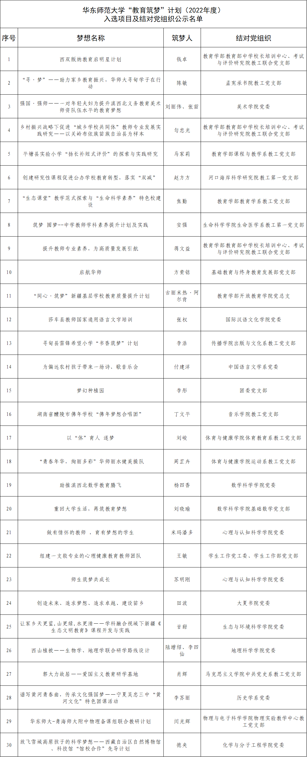 公示期为2022年3月17日-3月22日;如对入选项目及结对名单有异议,请在公示期内向校党委宣传部反映。