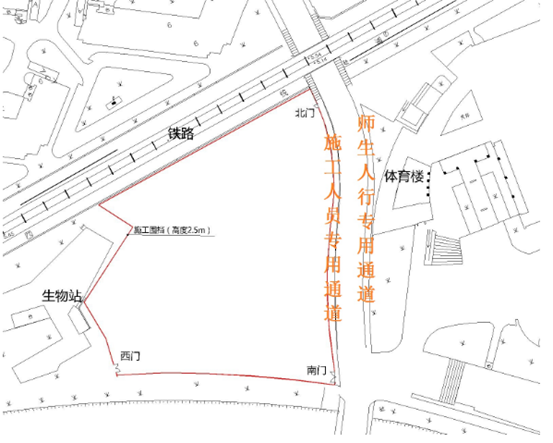 为保证师生出行安全,请老师和同学们注意避开或绕行施工区域(详见附图)。