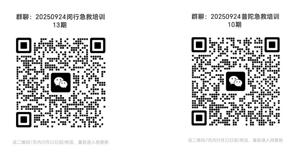 2、报名办法:扫通知下方二维码进群(请注意区分两校区二维码),在老师指导下通过“救在身边 守沪生命”小程序报名,报满为止。