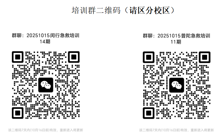 2、报名办法:扫通知下方二维码进群(请注意区分两校区二维码),在老师指导下通过“救在身边 守沪生命”小程序报名,报满为止。
