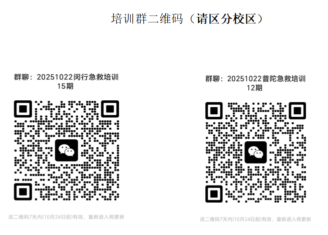 2、报名办法:扫通知下方二维码进群(请注意区分两校区二维码),在老师指导下通过“救在身边 守沪生命”小程序报名,报满为止。