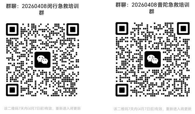2、报名办法:扫通知下方二维码进群(请注意区分两校区二维码),在老师指导下通过“救在身边 守沪生命”小程序报名,报满为止。