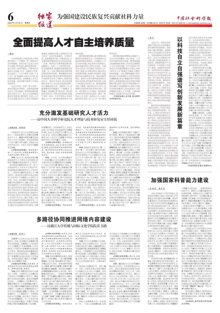今年的《政府工作报告》深入贯彻落实党的二十大精神,用一组组实实在在的数据,系统总结了过去五年的伟大成就。报告指出,接续推进世界一流大学和一流学科建设,不断夯实发展的人才基础。作为一名教育工作者,结合党的二十大关于教育、科技、人才“三位一体”新战略,应深入认识到,加快建设教育强国,全面提高人才自主培养质量,是时代赋予教育工作者的使命责任。