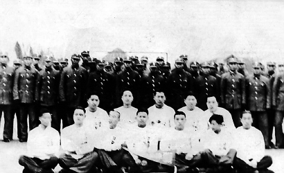 1938年6月,精武会摔跤队与坚守四行仓库的“孤军营”勇士合影。