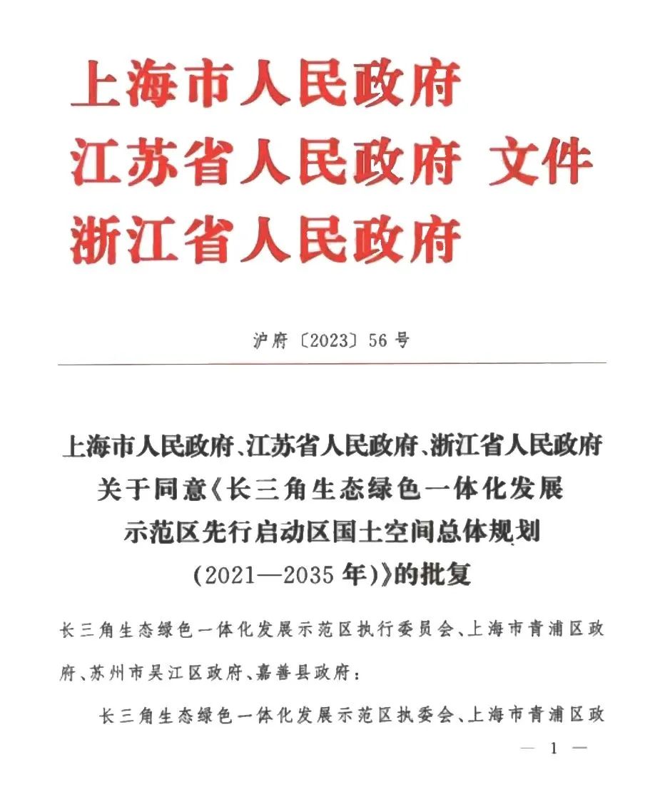 近日,《长三角生态绿色一体化发展示范区先行启动区国土空间总体规划(2021-2035年)》(以下简称《总体规划》)获得沪苏浙两省一市人民政府联合批复,标志着示范区“1+1+N+X”跨省域法定国土空间规划管理体系构建成型,实现“一张蓝图管全域”。