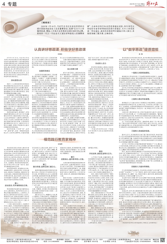 办好思政课关键在教师,“政治要强、情怀要深、思维要新、视野要广、自律要严、人格要正”,关键在发挥教师的积极性、主动性、创造性,努力做学生为学、为事、为人的大先生。