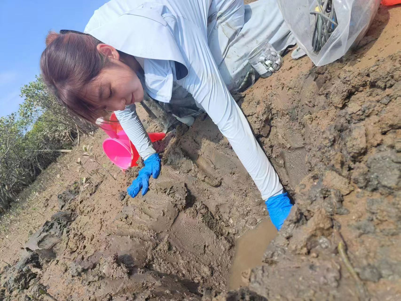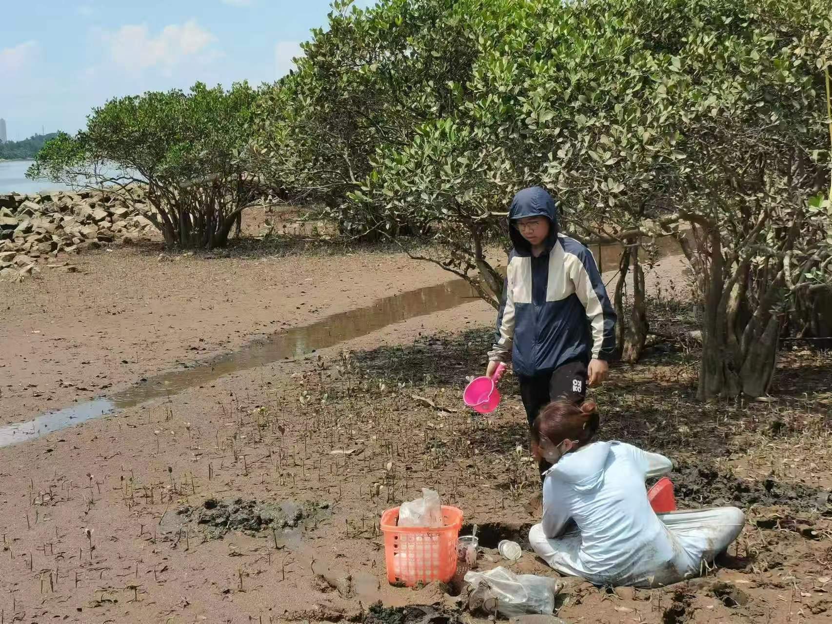 王雨思在进行间隙水采集工作