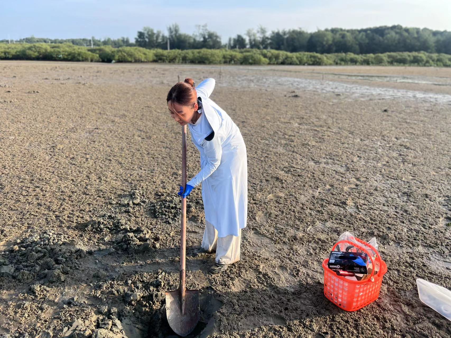 王雨思在广西的滩地上工作