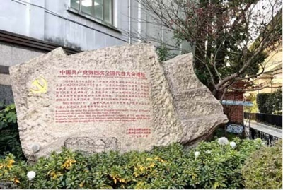 位于今上海东宝兴路与地铁三号线交汇处街边花坛内的中共四大遗址纪念碑