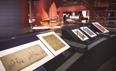 上海博物馆举办的“寰宇东西:马可·波罗眼中的中国和世界”特展上展出的丝绸织物。 本报记者 赖鑫琳 摄