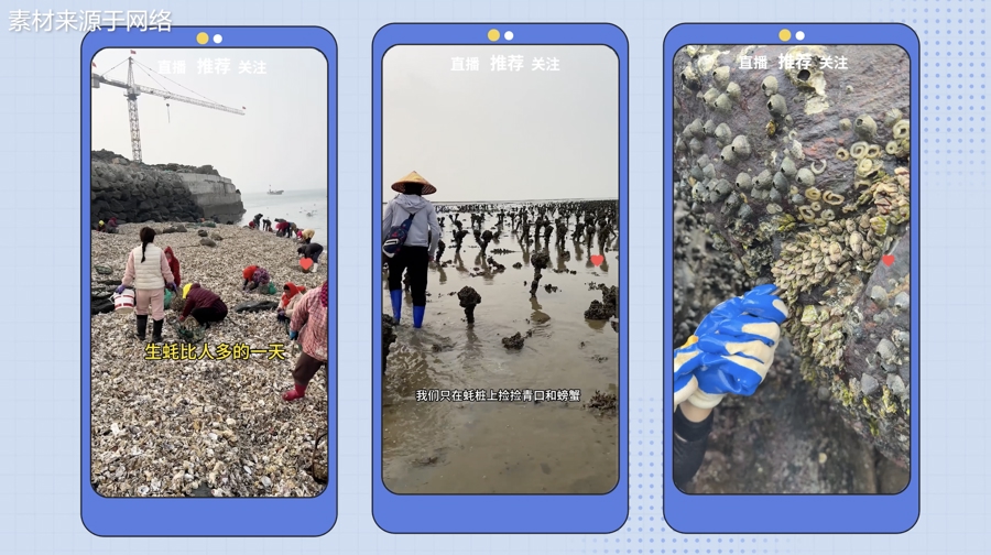 熊浩:我在短视频里面看的东西很杂,五花八门、乱七八糟,啥都有。我关注了晚上八点到十二点在立交桥下唱歌的,唱得非常好。还有那种渔民,他专门直播赶海,我就会有一些非常新鲜的生命经验的获得。