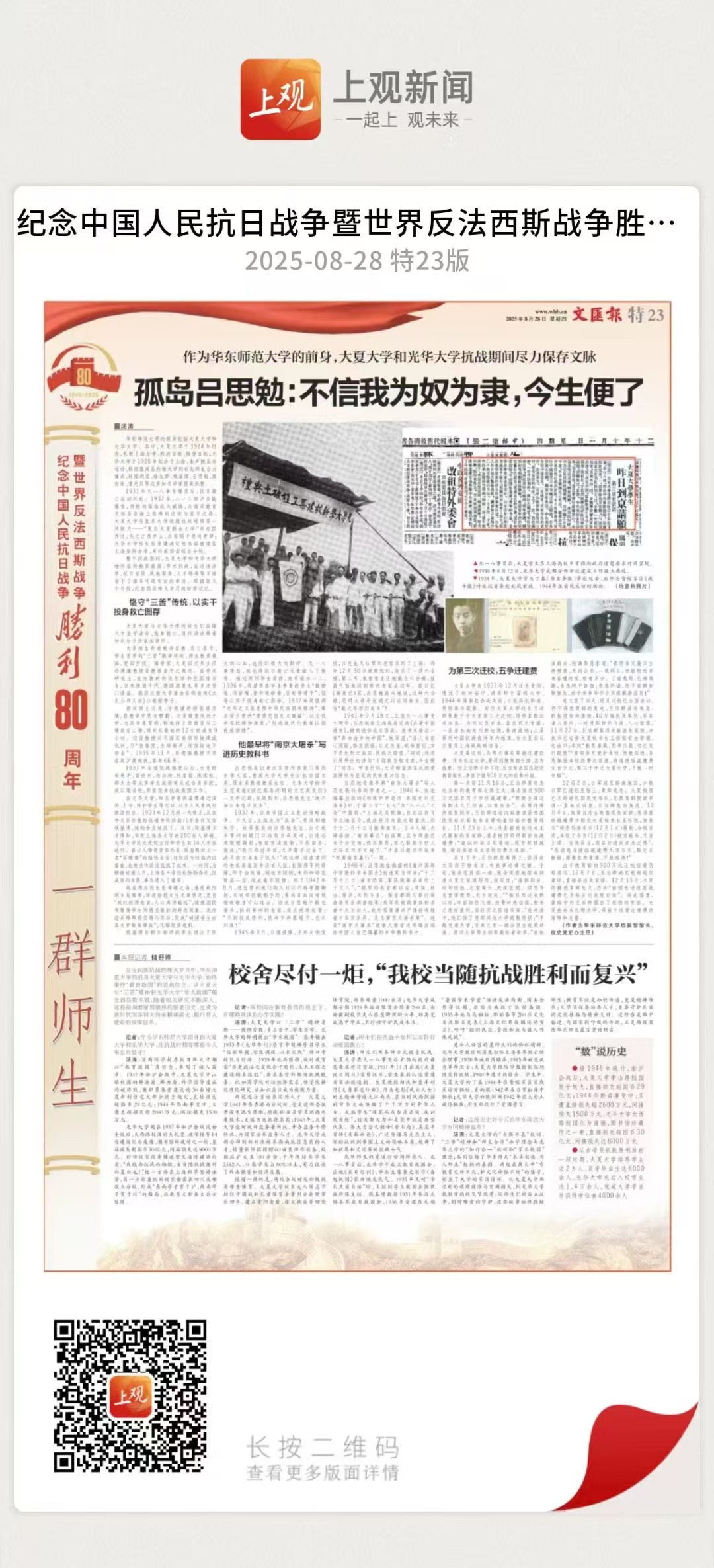 文汇报 整版丨孤岛吕思勉:不信我为奴为隶,今生便了