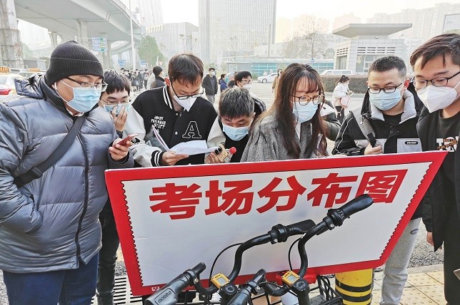 上图:2023年1月8日,湖北武汉,中央机关及其直属机构考试录用公务员笔试武汉理工大学考点。
