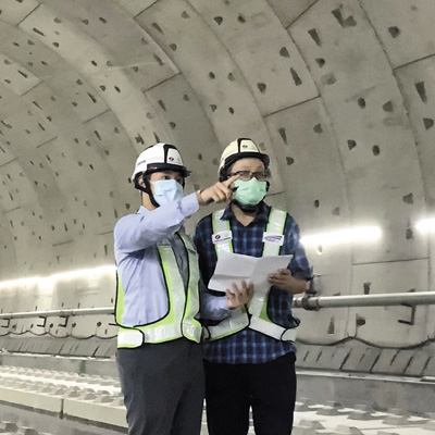 2022年9月10日,黄朝钦(左)在中国电建工程项目现场。受访者供图