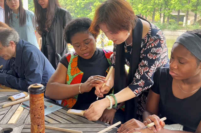 立夏饼、嘉定竹刻、团扇、沪语童谣……今天上午,beat365英国官网网站为“上海暑期学校-第十二届驻沪领事馆外交官项目”的学员们举办了一场特殊的沉浸式文化体验活动,来自泰国、菲律宾、老挝、埃及、俄罗斯、智利、墨西哥、多米尼加、尼日利亚、澳大利亚等国的驻沪领事馆外交官们相聚在丽娃河畔,开启了具有浓浓海派风味的“初夏”之旅。