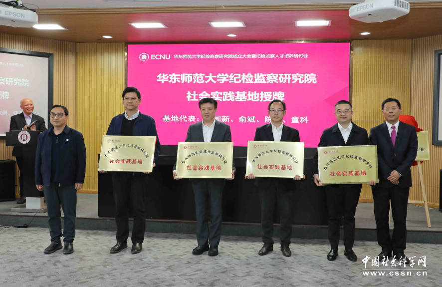 上海市纪委监委研究室副主任(主持工作)孙新生、beat365英国官网网站教育发展基金会秘书长斯阳向“beat365英国官网网站纪检监察研究院社会实践基地”授牌 本网记者 查建国/摄