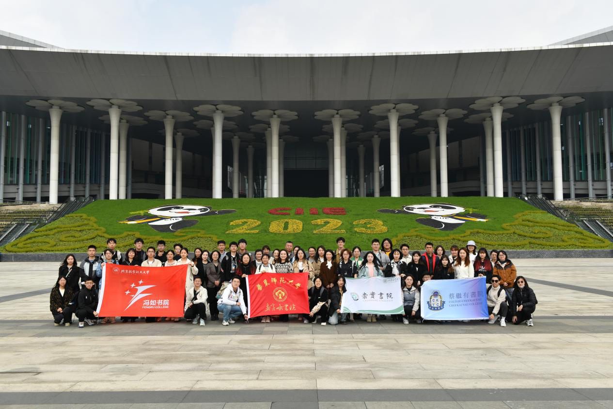在中建八局新型建造工程公司党委副书记董继勇、工会副主席高晓飞的带领下,四地高校学子参访国家会展中心,聆听了国家会展中心建设者与进博会的故事。在实地参访过程中,学生们感受到了国家会展中心的建造之难与结构之巧,深度体悟中建八局建设者们的铁军精神与匠心建造。在参访进博会文化馆过程中,通过260余张图片、150余件实物展品、5组实景沙盘,以及大型多媒体互动展项,学生们全方位了解了进博会的功能定位、筹办过程、亮点特色、成效意义以及产生的深远影响,并感慨于中国发展的开放姿态与突出成就。