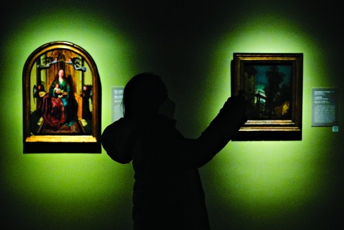 第一版块“波提切利和15世纪意大利绘画”版块,展示的是在15世纪意大利绘画全盛发展时期两个截然不同的流派。在这一版块中,观众可看到梅西那《书房中的圣哲罗姆》、贝利尼《圣母子》和波提切利《圣泽诺比乌斯的三个奇迹》等名作,近距离观察当时不同流派画作的差异与特点。