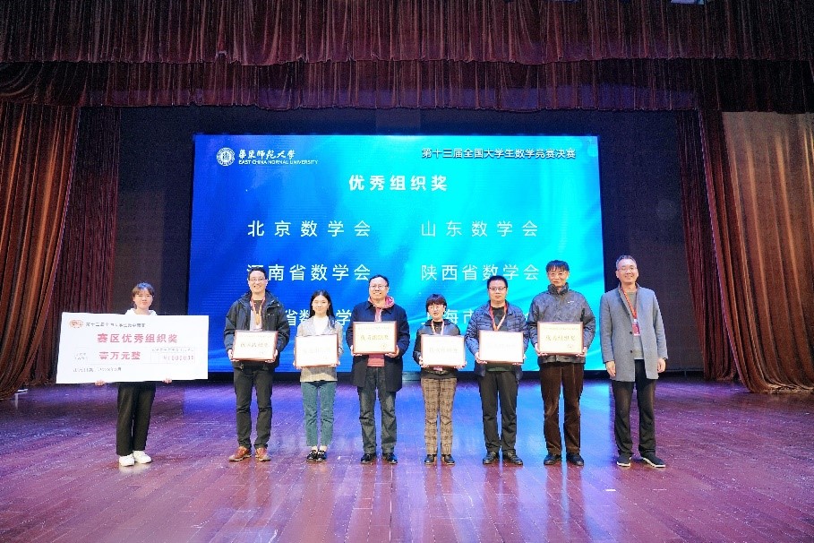 全国大学生数学竞赛工作组组长佘志坤教授为“优秀组织奖”获奖单位颁奖