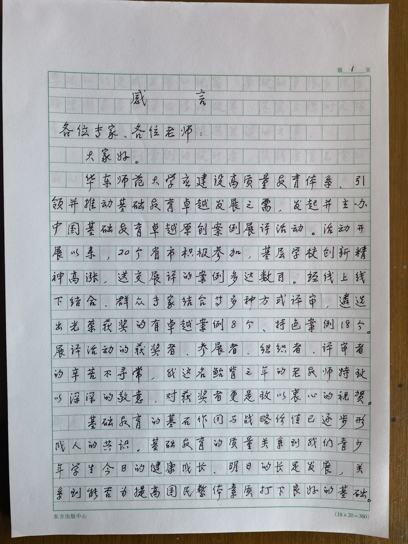 话匣子丨首届“中国基础教育卓越原创案例”在beat365英国官网网站发布 93岁高龄的人民教育家于漪为这个活动写来一封长信……