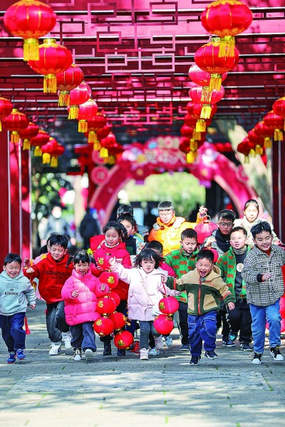 孩子们在南浔古镇游玩。陆志鹏摄/光明图片