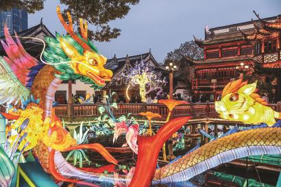 豫园灯会上,《山海经》中的瑞兽从书卷图鉴中“奔现”