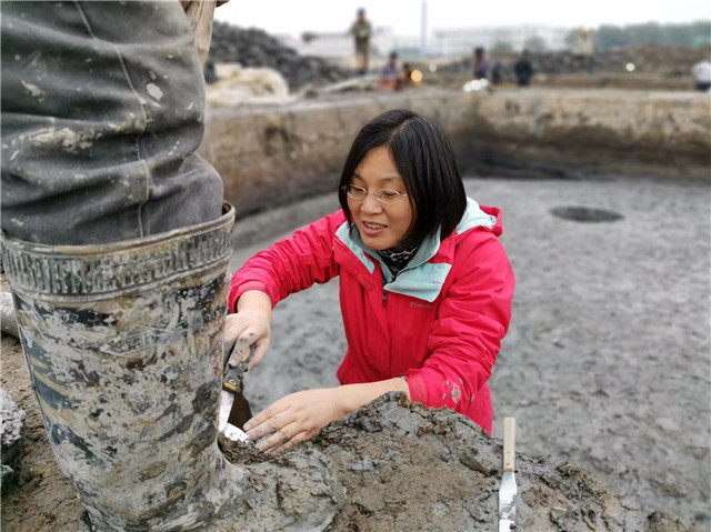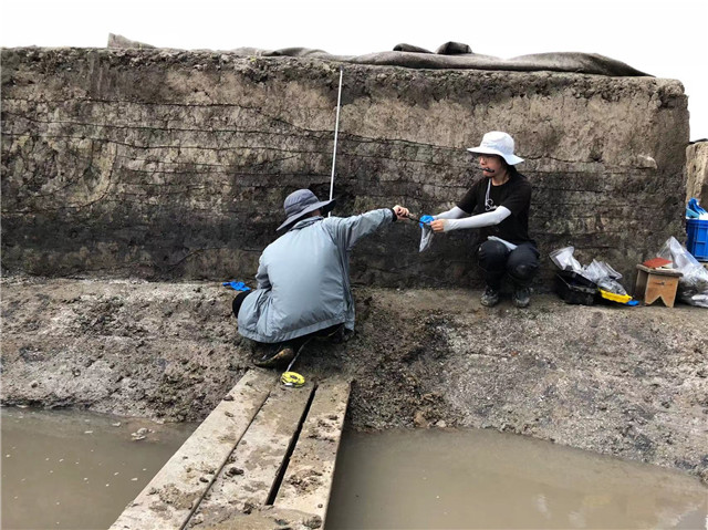 华师大科研团队在宁波的鱼山遗址现场展开研究。本文受访者供图